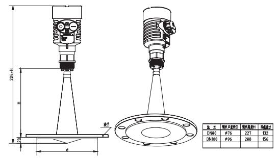 SKD57衛(wèi)生型平面雷達(dá)物位計外型尺寸圖