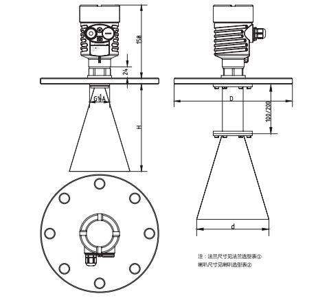 SKD53喇叭天線雷達(dá)物位計外型尺寸圖