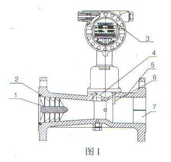 1、旋渦發(fā)生體 2、殼體 3、智能流量計(jì)積算儀 4、溫度傳感器 5、壓力傳感器 6、壓電晶體傳感器 7、消旋器