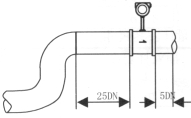 d)測量液體時,為了保證管內(nèi)充滿液體,所以在垂直或傾斜管道安裝儀表時,應(yīng)該保證液體流動方向從下而上。若管道內(nèi)含少量氣體,為了防止氣體進入儀表測量管,儀表應(yīng)安裝在管線的較低處如圖4b所示