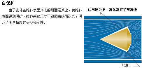 長期穩(wěn)定性好:錐體的外形設(shè)計保證流體在流經(jīng)錐體時是一種漸變的過程,無突變,β值可保持長期不變,儀表可長期使用不需標(biāo)定。