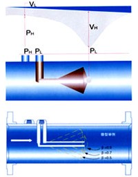 混合器作用:V 錐流量計的下游所產(chǎn)生的旋渦是短旋渦,可在下游將介質(zhì)混合,因此,目前V錐形流量計在作為流量計工作的同時,還可在很多場合用做靜態(tài)攪拌器,可迅速而充分的將介質(zhì)攪拌均勻。
