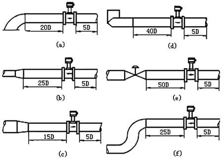 渦街流量計(jì)屬于對管道流速分布畸變、旋轉(zhuǎn)流和流動脈動等敏感的流量計(jì),因此,對現(xiàn)場管道安裝條件應(yīng)充分重視,嚴(yán)格遵照使用說明書執(zhí)行。