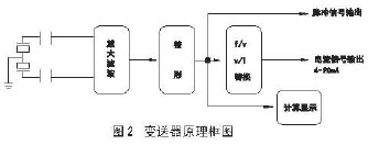 當(dāng)旋渦在柱體兩側(cè)產(chǎn)生時(shí)候,傳感器受到與流向垂直的交變升力的作用感生信號(hào),升力的變化頻率是旋渦頻率,傳感器將信號(hào)送轉(zhuǎn)換器放大整形后得到與流速成線性比例的脈沖信號(hào)直接輸出或?qū)⑵滢D(zhuǎn)換成4~20mA標(biāo)準(zhǔn)信號(hào)輸出,流量Q與頻率f的關(guān)系如下:式中:Q=瞬時(shí)體積流量(升/秒) f-頻率(Hz) k-儀表常數(shù)(次/升)