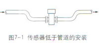 智能電磁流量計(jì)傳感器安裝方向可水平、垂直或傾斜。因?yàn)榱髁坑?jì)在工作時(shí),始終要求測量管內(nèi)充滿被測介質(zhì)。水平安裝時(shí),為了確保這一點(diǎn),必要時(shí)傳感器安裝位置的標(biāo)高可以略低于管道的標(biāo)高,如圖7-1,或使傳感器的下游具有足夠的背壓,如圖7-2。