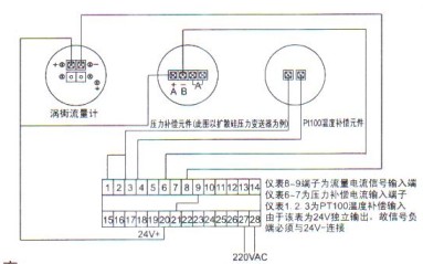 注意:渦街流量計輸出信號不能為開方,為比例電流,渦街量程必須設(shè)定為體積流量。