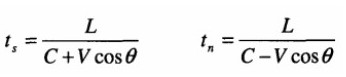 在管道中斜裝一對超聲波傳感器兩個(gè)傳感器之間的距離L為超聲波傳播聲程。那么,超標(biāo)在兩各傳感器之間的順流和逆流傳播時(shí)間分別為: