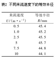 表2 不同來流速度下的等效半徑