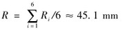 為了減小計(jì)算誤差,提高數(shù)據(jù)的置信度,對(duì)表3中的各等效半徑做平均值得到R,即: