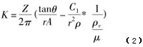 式中:Z—渦輪葉片數(shù)目;θ—葉片與軸線夾角;r—葉片平均半徑;A—流通截面積;ρ—流體密度;μ—流體粘度;C1—常數(shù)。
