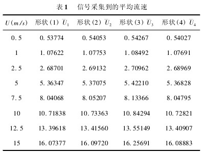 通過 FLUENT 仿真,可以看到由于探頭的插入,流質對探頭進行繞流運動,導致管道內(nèi)流場發(fā)生了變化,破壞了流場穩(wěn)定性,即是這種變化導致了插入式電磁流量計輸入輸出信號之間的線性度降低。同時還可以得到在0. 5m/s ~ 15m/s的流速范圍內(nèi),不同來流速度下信號采集到的平均流速,得到如下表 1。