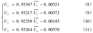 四條擬合直線分別對應了四項擬合公式,把信號采集到的平均流速帶入這些公式,可以得到其最小二乘線性擬合儀表示值,如表 2 所示。