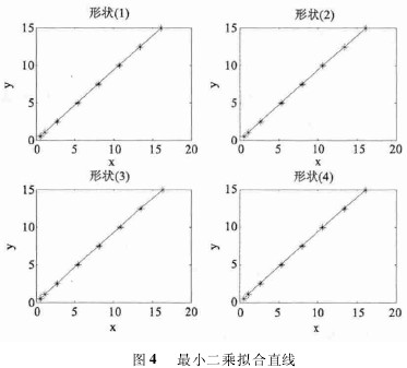 從上表數(shù)據(jù)可以找出相應探頭形狀對應的最大的最小二乘線性擬合殘差,因此時的理論滿量程為 14. 5,則根據(jù)式( 4) ,就可以計算出這四種形狀的最小二乘線性度,如表 4 所示。