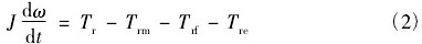 式中: J 為渦輪的轉(zhuǎn)動慣量; ω 為渦輪的旋轉(zhuǎn)角速度,t 為時間,Tr為氣流對葉片的推動力矩,Trm為機(jī)械摩擦力矩,Trf為流動阻力矩,Tre為電磁阻力矩。