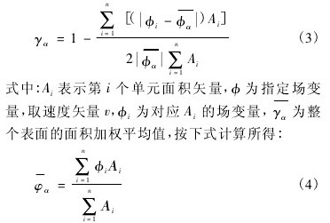 從均勻性指數(shù)的定義可以看出,當(dāng)指定物理量為速度時,γα表示流場速度分布均勻性。面積加權(quán)均勻性指數(shù)在數(shù)值模擬中均可由程序自身提供,這樣大大提高了計(jì)算的便捷性。因此,在數(shù)值模擬中用 γα評價截面的流動均勻性具有明顯的優(yōu)勢。