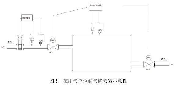 上圖這個(gè)系統(tǒng)中,閥門(mén)控制器根據(jù)罐內(nèi)壓力來(lái)自動(dòng)控制閥門(mén)一,閥門(mén)二的開(kāi)閉。這兩個(gè)閥門(mén)為電磁閥,開(kāi)閉的執(zhí)行時(shí)間非常短暫。當(dāng)儲(chǔ)氣罐為空,即壓力接近常壓時(shí),閥門(mén)一打開(kāi),蒸汽由入口放入進(jìn)入充氣階段,流量計(jì)開(kāi)始計(jì)量,儲(chǔ)氣罐內(nèi)壓力上升到某點(diǎn)后,儲(chǔ)氣罐充滿(mǎn),閥門(mén)一關(guān)閉,蒸汽流量計(jì)停止計(jì)量,閥門(mén)二打開(kāi),蒸汽由閥門(mén)二出口處排出到生產(chǎn)部門(mén),儲(chǔ)氣罐排空后作如上循環(huán)工作。