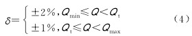 式中:δ為計(jì)量相對(duì)誤差;Qmax為工況最大流量,m3/h;Qmin為工況最小流量,m3/h;Qt為分界流量點(diǎn),其值等于 20%Qmax,m3/h。
