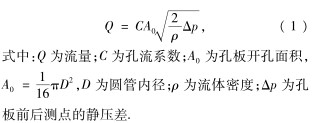 孔板流量計(jì)是一種差壓式流量計(jì).對(duì)于不可壓流體的水平管流動(dòng),忽略管壁摩擦阻力損失,根據(jù)流體的連續(xù)性和機(jī)械能的相互轉(zhuǎn)化可得