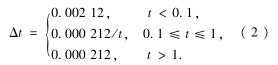 由于流速不斷增大,考妞采用變時(shí)間步長(zhǎng)的方式以提高迭代過(guò)程的經(jīng)濟(jì)性,時(shí)間步長(zhǎng)△t與時(shí)刻t采用式(1)的關(guān)系式: