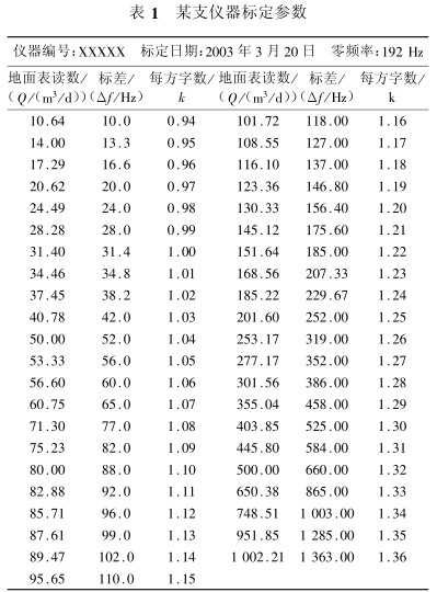 式中,△?為標(biāo)差;?i為測(cè)量頻率值;?0為零頻率。然后通過(guò)查表得到每方字?jǐn)?shù)即可求得地面流量值: