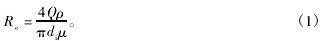 式中:Qe為流體流量,m3/s;di為內(nèi)徑,m;μ為流體動力黏度,Pa·s;ρ為流體密度,kg/m3。