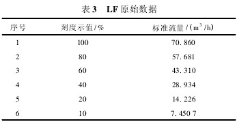 按玻璃管上的百分比刻度做其對應(yīng)的標(biāo)準(zhǔn)流量,如表3所示。從表3可看出,假如需要60m3/h、50m3/h、40m3/h、30m3/h的標(biāo)準(zhǔn)流量時,我們是無法較為正確把浮子調(diào)到玻璃管上其對應(yīng)的位置的,因此需要通過下列步驟得到我們想要的結(jié)果。