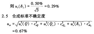 ?? 根據(jù)多次試驗(yàn),內(nèi)徑測量誤差為±0. 5mm時(shí)引起流量的影響量得到一個(gè)經(jīng)驗(yàn)值,約為0.50%,按均勻分布考慮,則測量管道內(nèi)徑帶來的不確定度為: