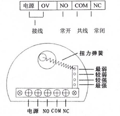 2.具體方法:打開接線盒,將扭力彈簧靠近多孔一端拿出,根據(jù)需要插入對(duì)應(yīng)的孔中(靠近端子臺(tái)的孔扭力最弱)。