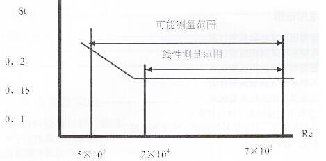 由上式可見,VSF輸出的脈沖頻率信號不受流體物性和組分變化的影響,即儀表系數(shù)在一定雷諾數(shù)范圍內(nèi)僅與旋渦發(fā)生體及管道的形狀尺寸等有關(guān)。但是作為流量計在物料平衡及能源計量中需檢測質(zhì)量流量,這時流量計的輸出信號應(yīng)同時監(jiān)測體積流量和流體密度,流體物性和組分對流量計量還是有直接影響的。