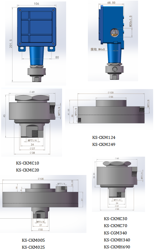 KS-VKM系列:丁腈橡膠及1/2NPTF壓力接口鋁合金材質(zhì)(其他接口和材質(zhì)可定制)